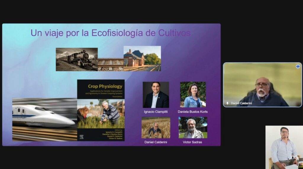 En esta actividad el Dr. Calderini presentó el origen y alcance de esta obra, realizando un recorrido desde lo que fue la primera edición en 2009 hasta esta tercera versión, la que -al igual que las anteriores- consta de dos secciones: Sistema de cultivos, por una parte, y Cultivos, recursos y estreses, por otra.